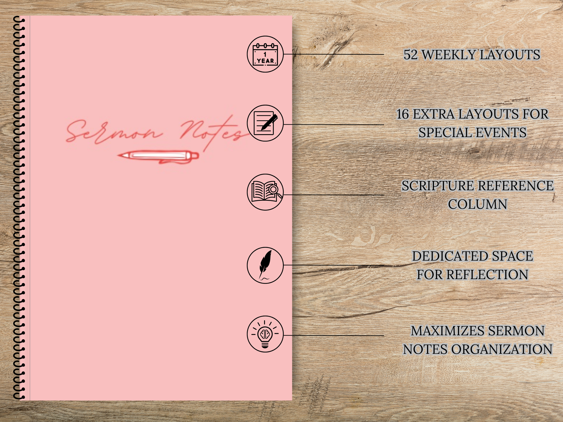 Finally, a sermon notes journal that's more than just empty lines. Take great notes and keep your thoughts organized even when the speaker is on a tangent. Contains a year's worth of weekly sermon notes layouts plus 16 additional layouts for Bible studies or special events!