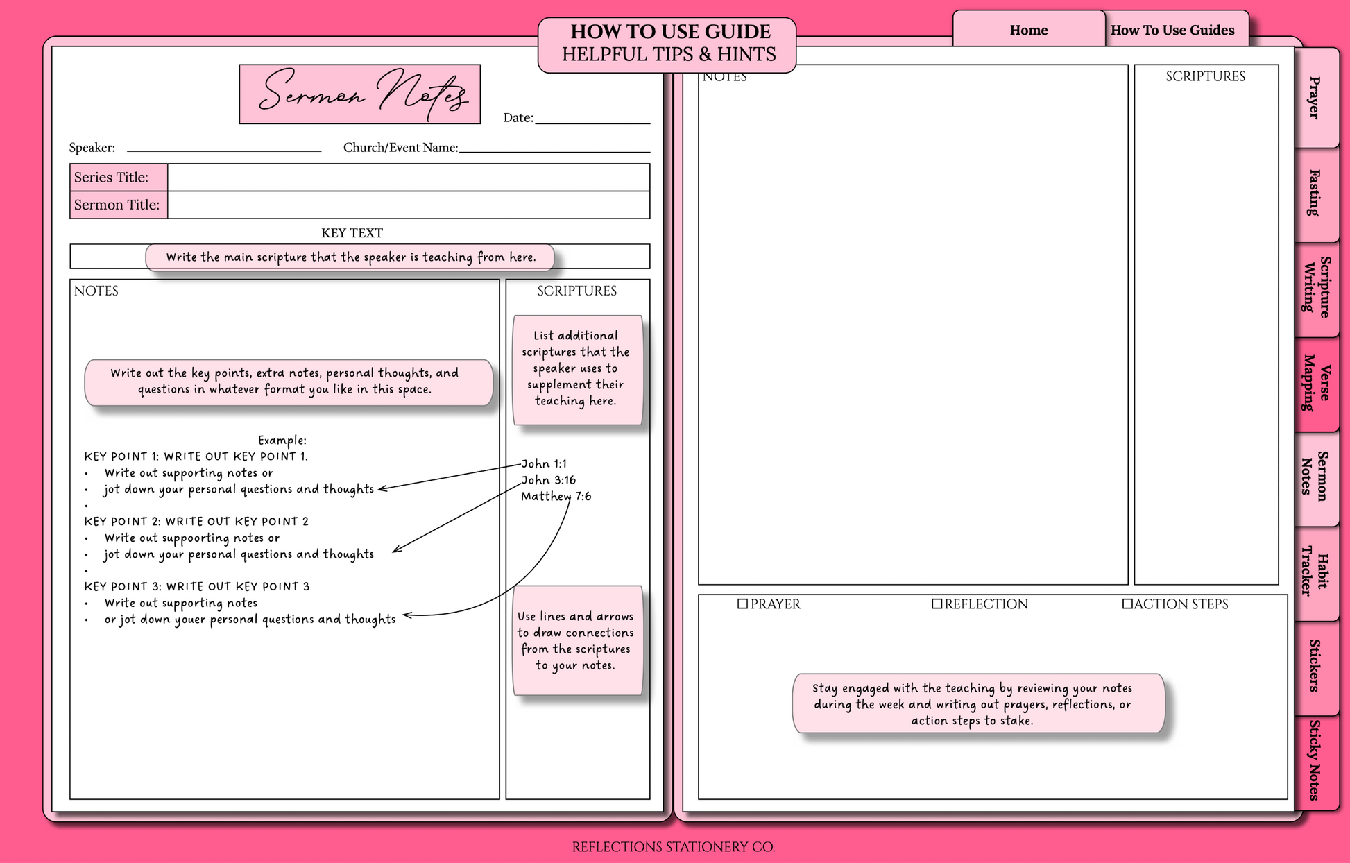 Explore multiple ways to engage with the Scriptures: verse mapping, scripture writing, and sermon notes.